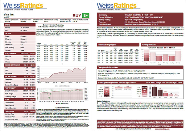 If you’d like to generate a one-page summary report on any of the companies we rate, you can do it instantly, with the click of a single button.