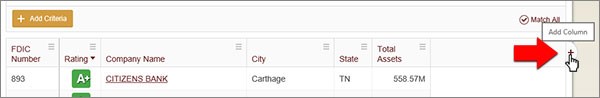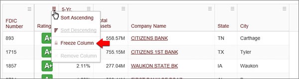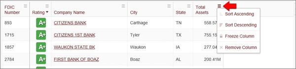 But what if you don’t want that column all the way at the end? What if you want to see that data right next to the bank’s Rating? And followed by their Total Assets? You can do that simply by dragging the columns into the order you like.